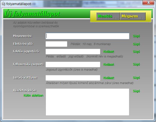 - "Új folyamattípus": bekéri az új folyamattípus megnevezését (ellenőrzés: unique)